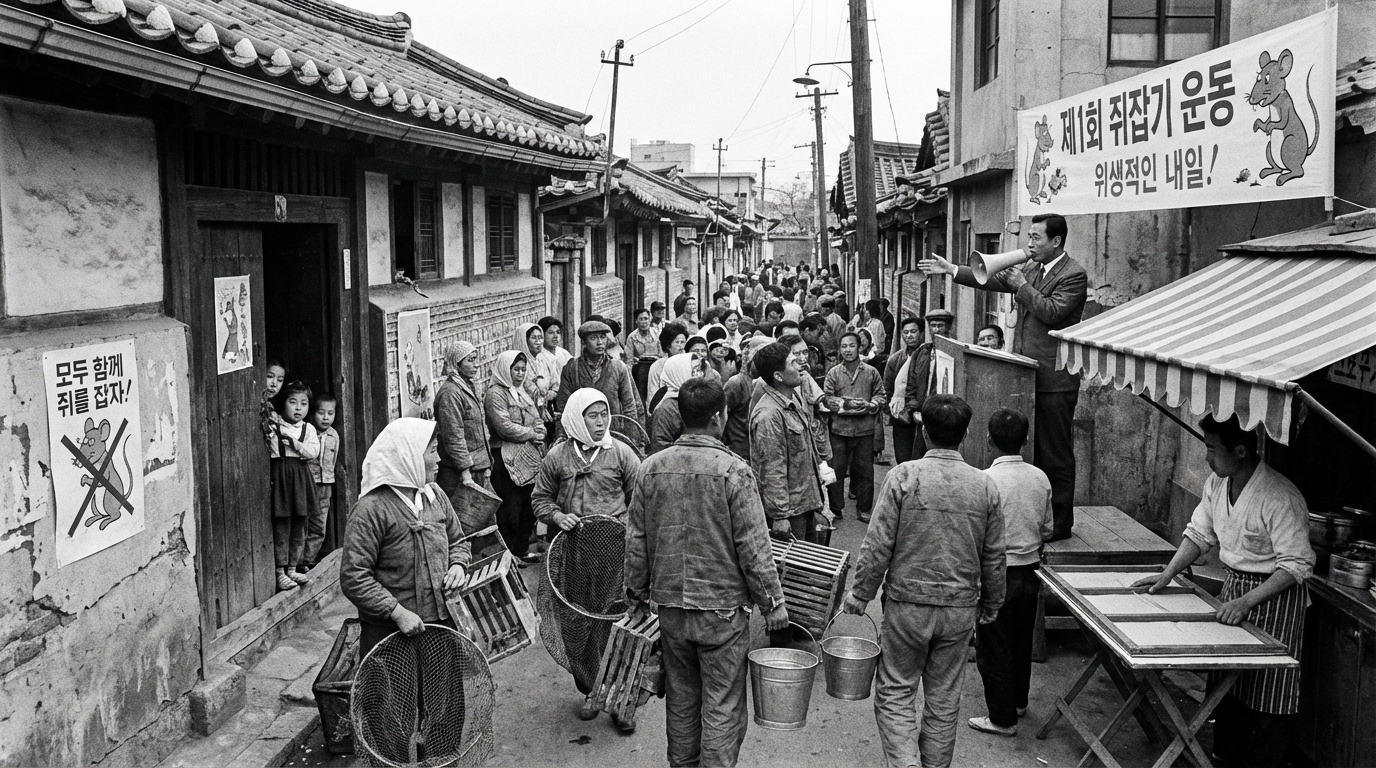 기록에는 오후 6시에 각 가정에 쥐약을 놓고 1인당 5마리를 목표로 했다는 방식, 쥐약 무료 배포, 학생들이 잡은 쥐의 꼬리를 잘라 학교에서 검사를 받았다는 절차가 구체적으로 적혀 있습니다. 또한 정부가 전국 쥐의 수와 곡식 피해량을 추정해 문제를 ‘수치화’했고, 1차 작전의 소탕 수를 제시했다는 점도 눈에 띕니다. (나라기록포털)