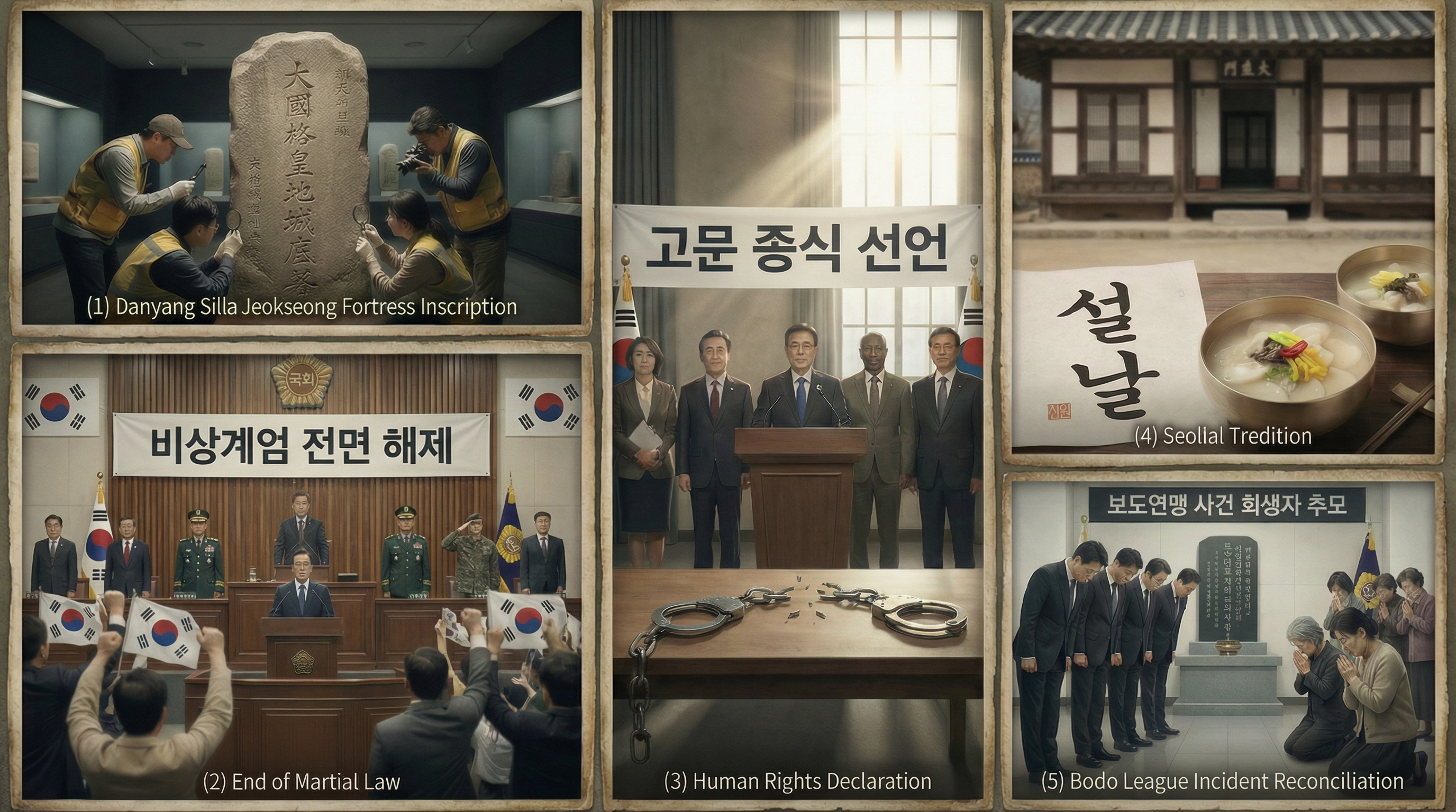 1월24일 한국사에서 기억할 사건 5가지를 공식 연표로 정리했습니다. 단양 신라적성산성비 판명, 비상계엄 전면 해제, 고문 종식 선언, 설날 명칭 확정, 보도연맹 사과까지 핵심과 확인 포인트를 한 번에 봅니다. 연도별 배경과 검색 키워드도 함께 제시합니다. 바로 적용 가능합니다.