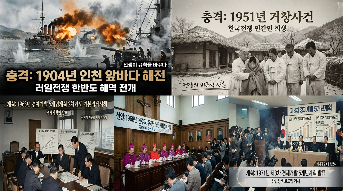 2월 9일 한국사 주요 기록 5건을 러일전쟁, 전쟁기 민간인 피해, 경제개발 계획, 사회정의 성명까지 한 번에 정리했습니다. 각 사건의 배경·핵심·시사점과 함께 확인 키워드와 읽는 순서도 제시해, 오늘의 역사를 빠르게 이해하도록 돕습니다. 처음 읽는 분도 흐름을 잡을 수 있습니다.