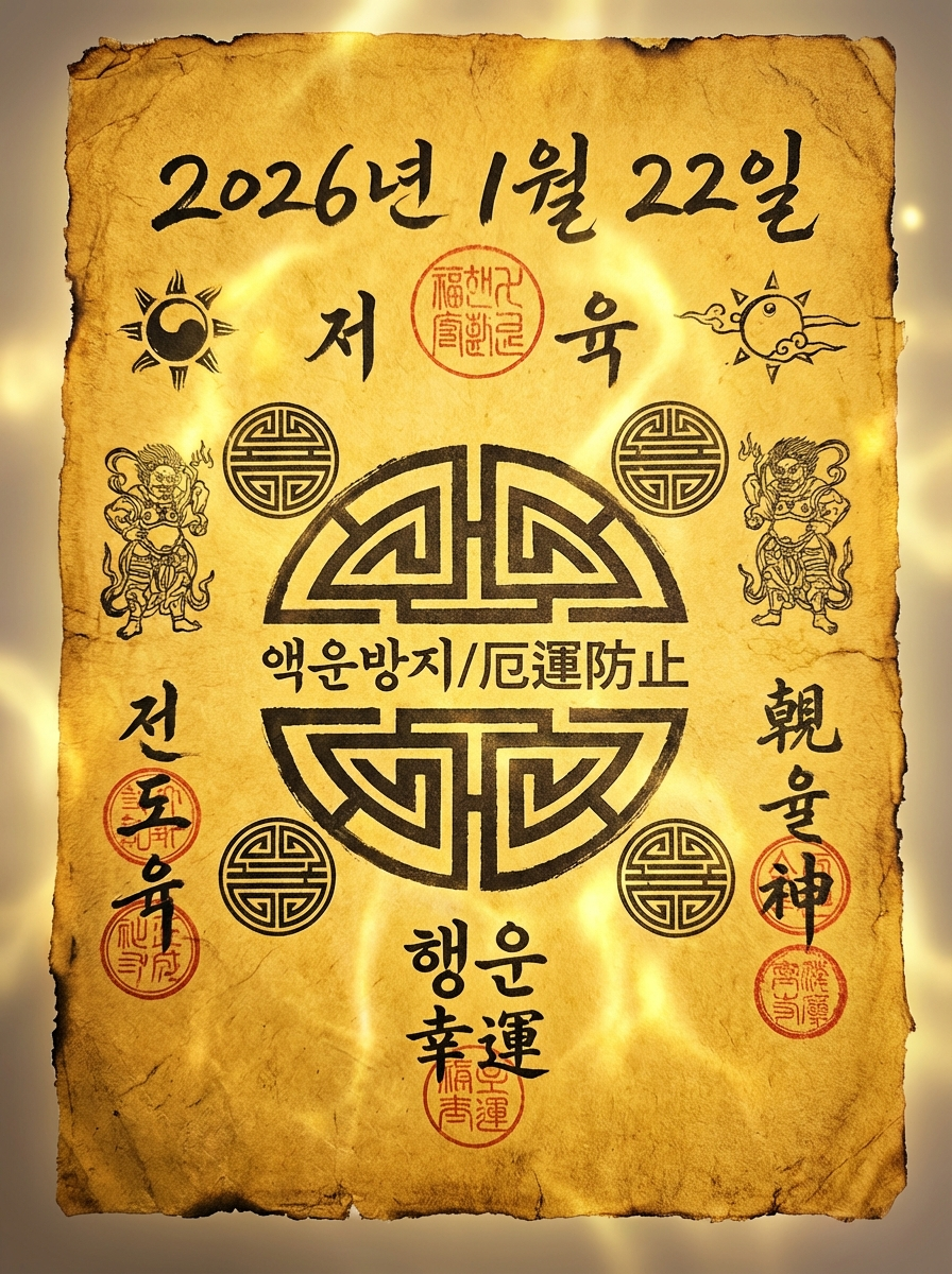 2026년 1월 22일 운세를 주역 관점으로 정리했습니다. 12띠별 주요 키워드와 금전·연애·직장·건강 흐름, 좋은 궁합과 주의 궁합, 말실수를 줄이는 대화 팁, 일정 정리법, 지출 누수 점검표까지 초보도 바로 적용하도록 실천형으로 안내합니다. 하루의 선택이 가벼워집니다.(아래 행운과 액운 방지 부적이 있어요)